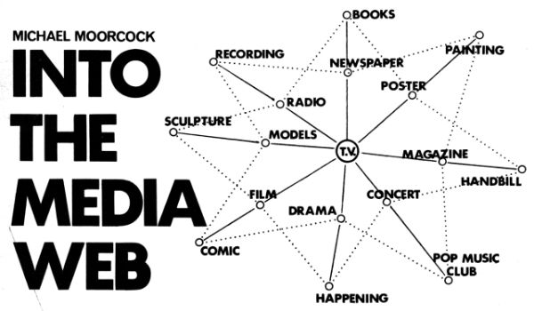 The perceived importance of TV back then is captured in this diagram from a Michael Moorcock article in the same issue of New Worlds as the final instalment of Bug Jack Barron, which places television right at the centre of the “Media Web”:
