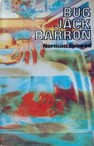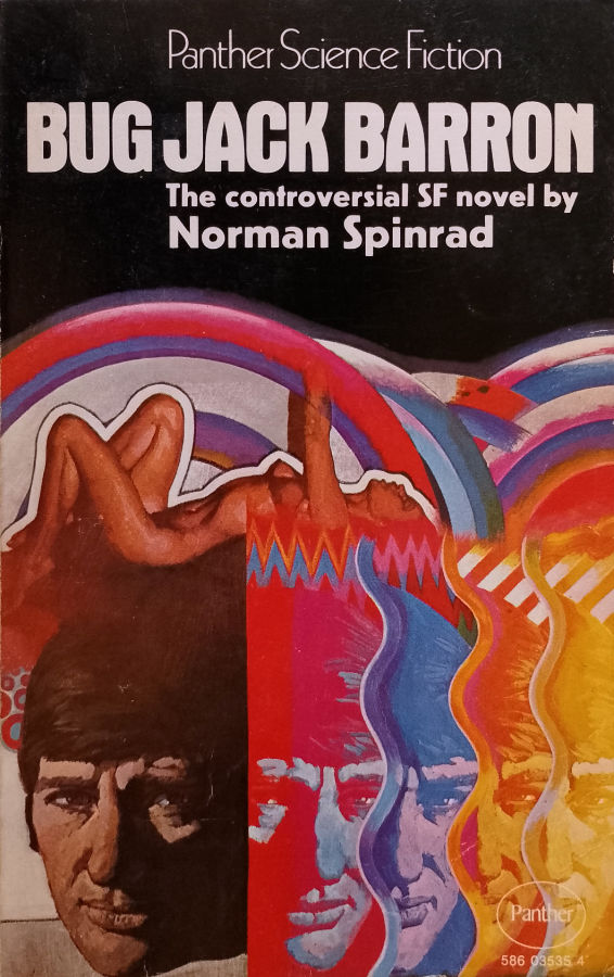 Bug Jack Barron is one of those novels you keep hearing mentioned if you read about the history of science fiction, particularly the New Wave that revolutionised the genre’s literary palette in the late 60s and early 70s. It was initially published in Michael Moorcock’s New Worlds between December 1967 and October 1968 (which, if you don’t have your countercultural periodical publication frequency calculator handy, is six instalments), but the novel’s liberal use of swearing, drug use, and sex caused WHSmith, the largest magazine distributor and vendor in the country at the time, to refuse to stock its March 1968 issue, after which (because New Worlds had an Arts Council grant) “questions were asked” in the House of Commons. (Which you can read here. It’s quite short and mild and, despite the legend, Spinrad never gets called a “degenerate”. He’s not even mentioned by name.) The novel was published in book form in 1969.