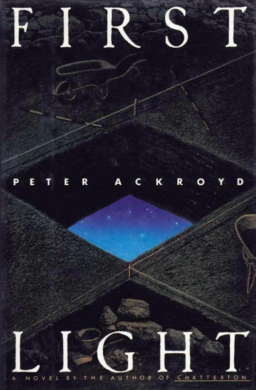 I came to this novel because a brief description I read somewhere reminded me of David Lindsay’s Devil’s Tor. Like it, First Light (1989) is set in the southwest of England (on the Devon/Dorset border), and deals with the uncovering of an ancient tomb somehow linked to the stars. The only other Ackroyd novel I’ve read is his first, Hawksmoor (1985), which I remember as being nightmarish (in the full dream-like sense), with a lot of impressionistic writing as it slips between two times. First Light is different. Its prose is clear, its tone often comic (or at least satirical), and it has a far larger cast of characters. Having read it, the comparison I’d make is not with Devil’s Tor, but another novel from that same decade and also set in the southwest, weaving mysticism with the misty English landscape: John Cowper Powys’s A Glastonbury Romance.