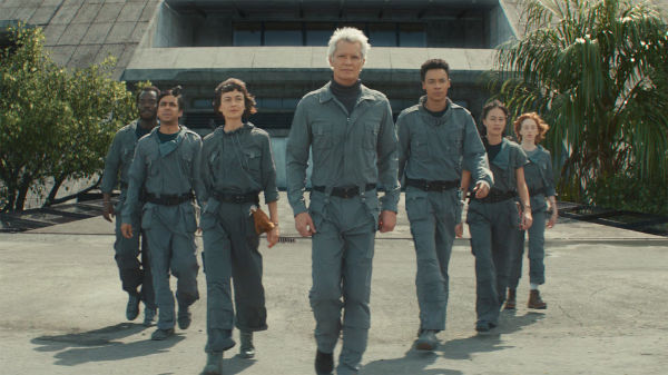 The only glimpse we get of ordinary workers along the lines of the “space-truckers” from Alien are the first-responder security guards/soldiers. One of them says: “We got a good thing going here. We’re alive. We get paid.” But in a tone that implies you can’t really ask much more than that. No freedom, self-expression, or security, just survival. In this ultra-corporate world, the only truly free people are the CEOs that sit atop those five mega-companies. Everyone else has to do what they’re told.
